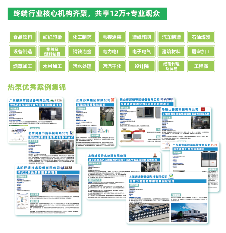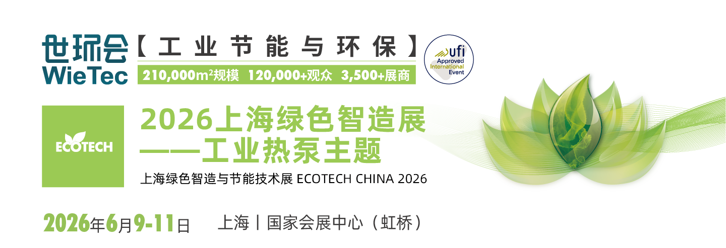 2026年上海綠色智造與節(jié)能技術(shù)展旗下的工業(yè)熱泵主題展將于2026年6月9-11日在上海|國家會(huì)展中心(虹橋)盛大啟幕工業(yè)熱泵主題展預(yù)計(jì)規(guī)模達(dá)10,000平米,將吸引終端領(lǐng)域?qū)I(yè)觀眾20,000多名,展會(huì)將深度布局行業(yè)終端,打造工業(yè)熱泵示范項(xiàng)目,助力企業(yè)直面新能源、電鍍涂裝、石油化工、電力工廠、紡織印染、食品飲料、污泥干化等領(lǐng)域終端及環(huán)保領(lǐng)域用戶。